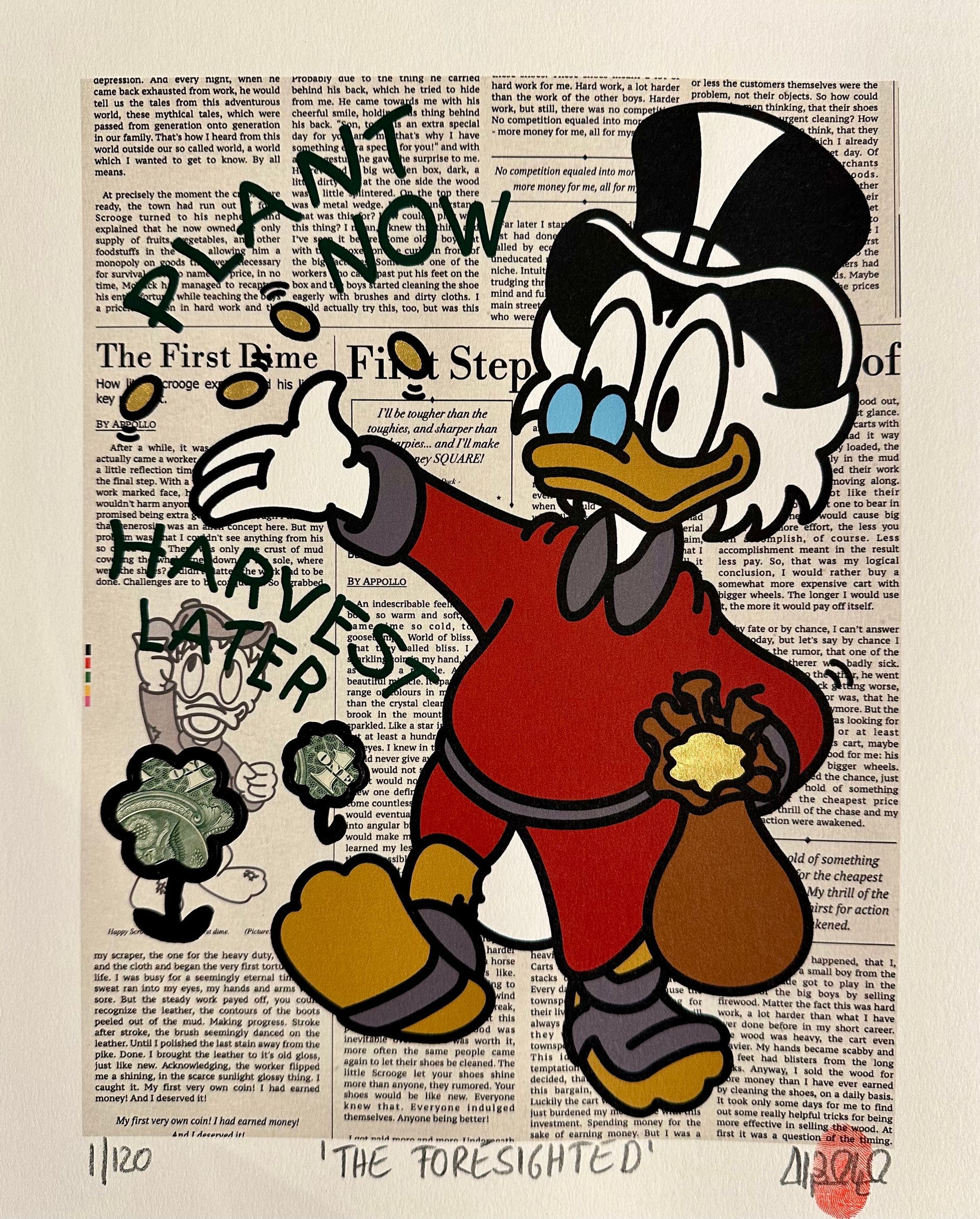 Der studierte Wirtschaftsjurist setzt sich in seinen Arbeiten hauptsächlich mit Themen der Lebensphilosophie, Motivation und des wirtschaftlichen Handelns auseinander. Hierbei hat es ihm besonders die bekannte Figur des Dagobert Duck und dessen in den Comics skizzierten Lebensweg angetan. Auch die Figur der Daisy Duck verwendet Appollo gerne, hierbei interpretiert er sie zumeist als Sinnbild der emanzipierten, selbstständigen und intelligenten Frau, ganz so, wie sie, historisch eingebettet in ihre tatsächliche Entstehungszeit, außerhalb des Gesellschaftsbildes lebt und agiert.